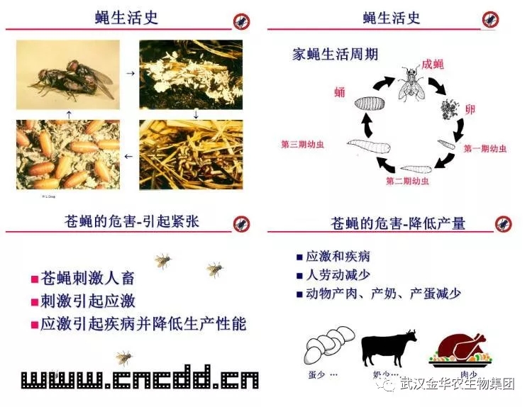 一年伊始,隨著氣溫日漸變暖,大家會發現,整個冬天不見蹤影的蒼蠅又慢慢出現在我們的視野,特別是養殖場,環境比較特殊,食物、水源充足,大面積的空地更適合有害生物的棲息,而且附近存在巨大吸引源多,蒼蠅更是紛涌而來。但是在大部分養殖場,管理者總是到了中夏的時候才注意到蒼蠅的問題,開始控制密集的蒼蠅。而實際的情況是,如果管理者能夠在第一只蒼蠅孵出和產卵前就開始采取滅蠅措施,那么滅蠅工作就不再會是令管理者頭疼的一件事情了。滅蠅工作開展的好壞,與養殖場蠅媒性疾病、環境管理等有很大關系。