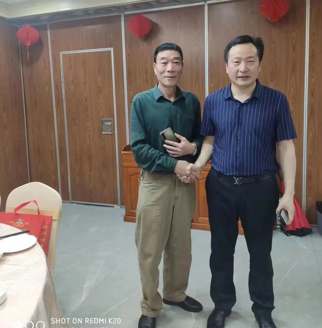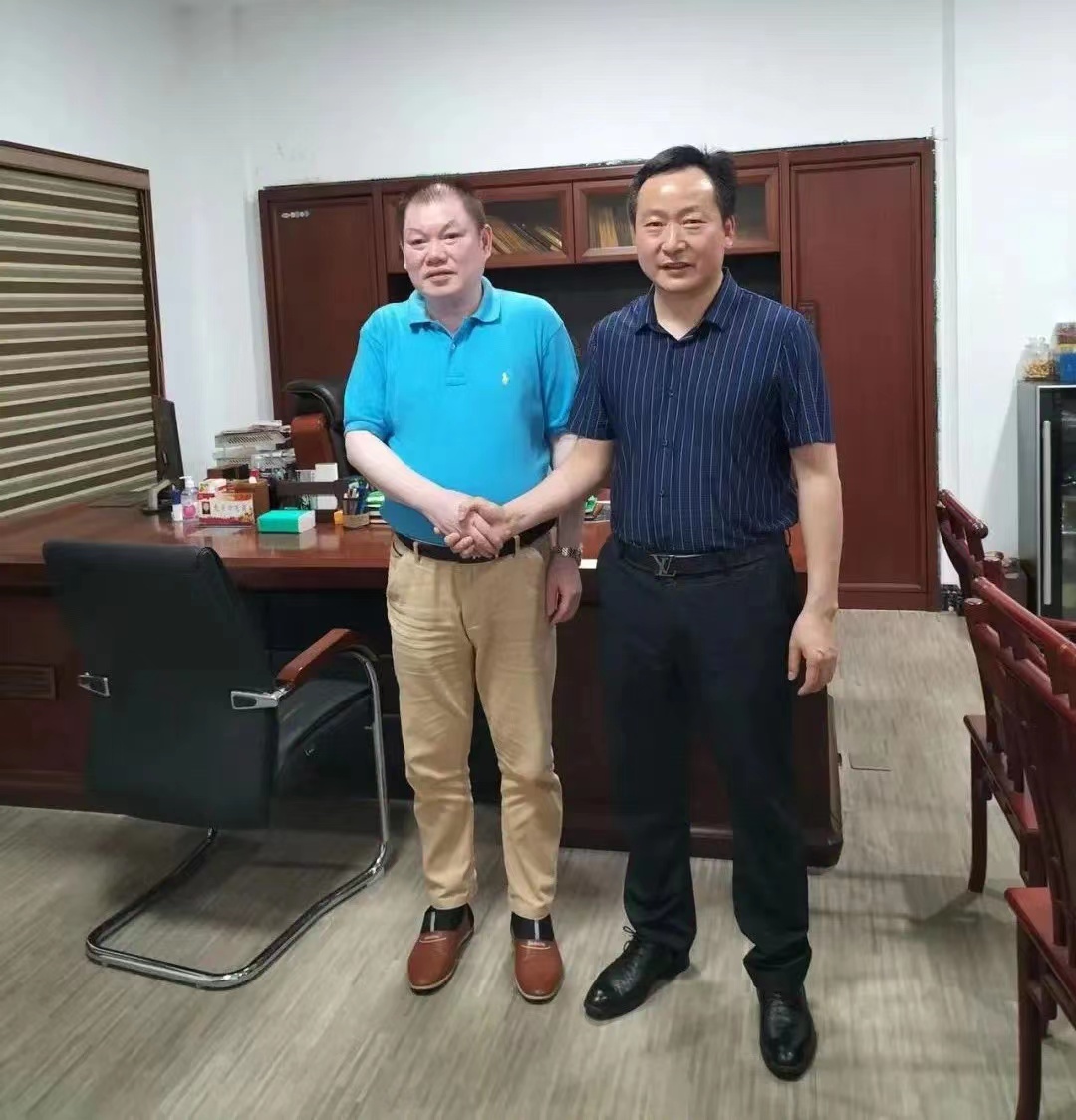 ▲富勝總經理與養殖集團鄭總握手合影留念