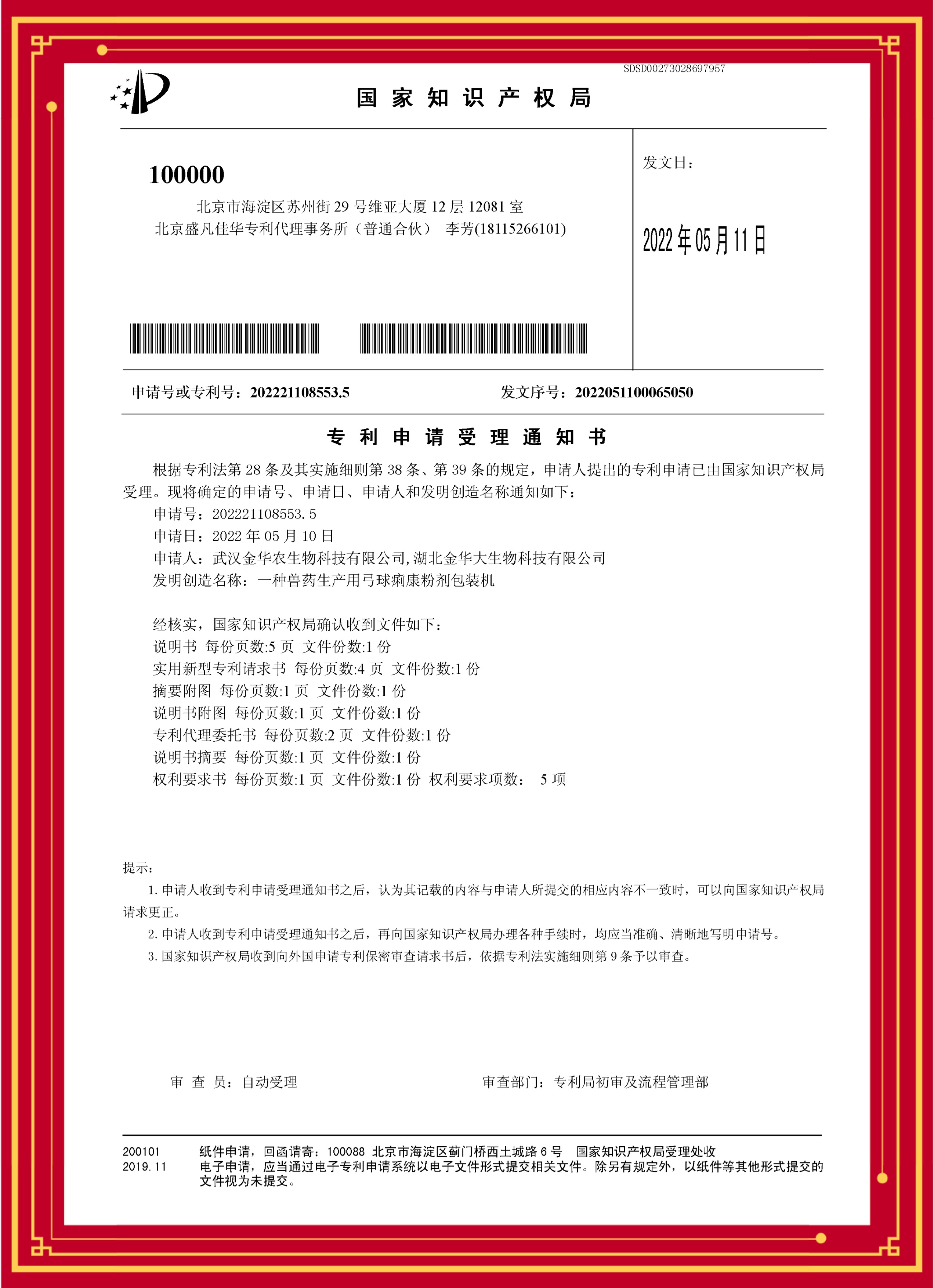 科技發明專利(金普西林):專利號—202221407935.8
