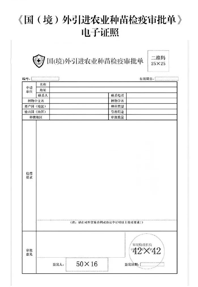 6、《國(境)外引進農業種苗檢疫審批單》電子證照樣式