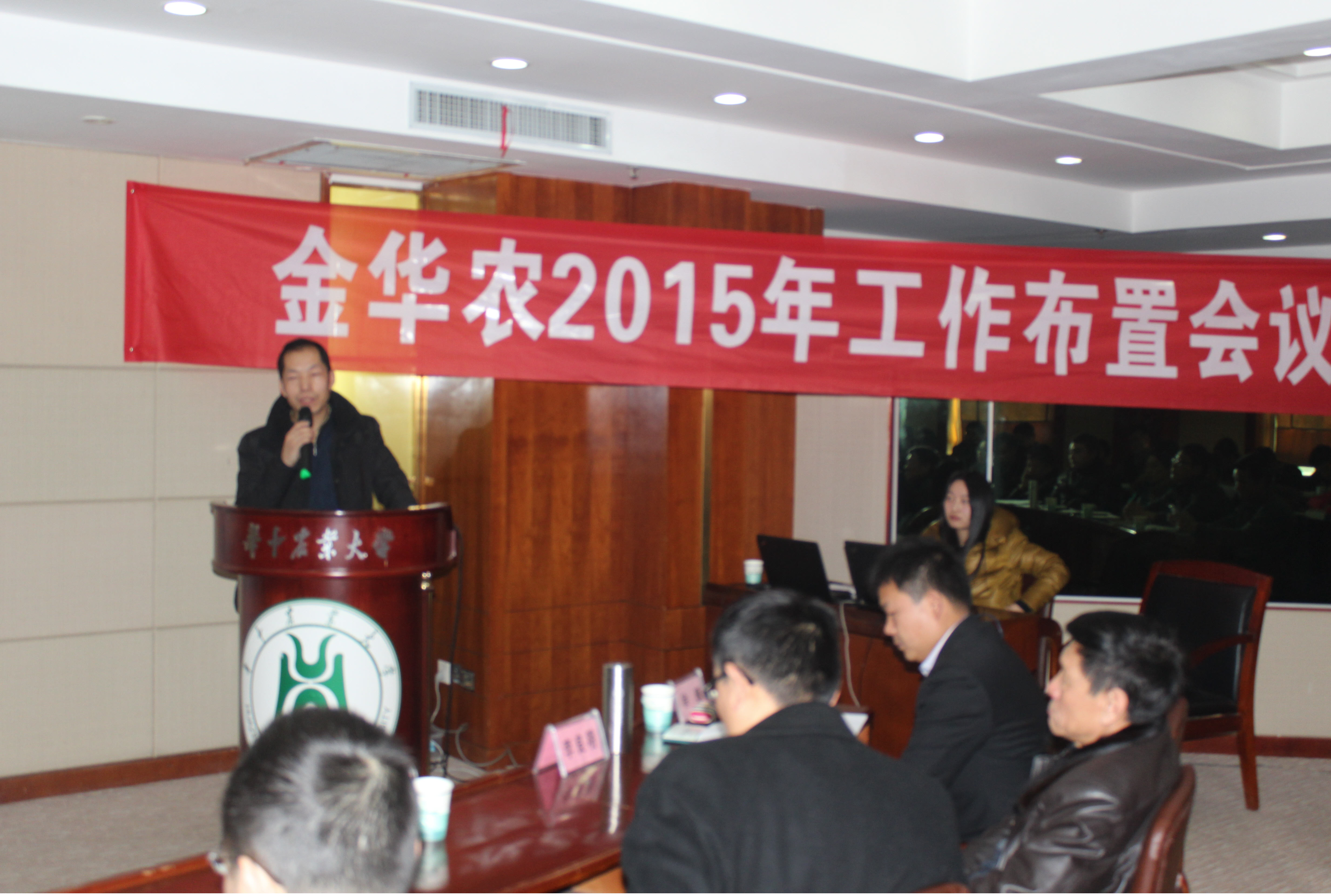 李仁剛書記賀辭里指出:金華農公司源自華農,亦服務于農業養殖,每個元素都與華農淵源頗深,雖然是一家年輕的企業,但是發展速度極快,短短3年時間里,其規模已經發展得相當壯觀,獸藥動保科技產品50多個已上市銷售,銷售團隊一百多人,銷售業績達幾千萬元,今年被武漢市政府評為“優秀科技創新型企業”,成績可喜可賀!希望在以富勝總經理為核心的團隊領導下,2015年再創輝煌業績。
