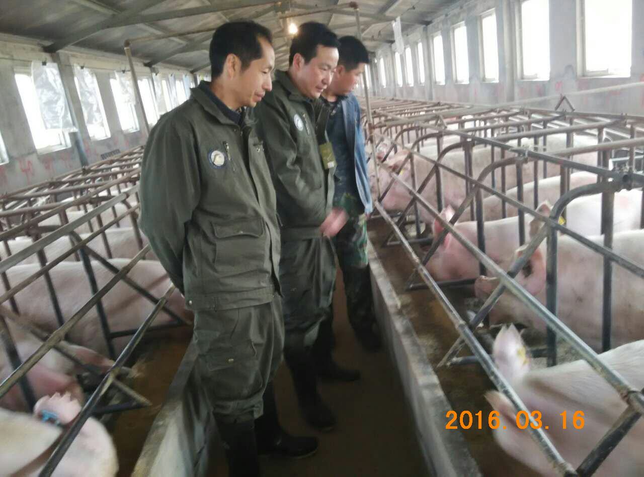3月13-16日,應安陽林州市母豬存欄千頭規模化種豬養殖場的邀請,華中農業大學獸醫臨床專家、公司領導富勝總經理,華中農業大學獸醫臨床藥理學專家陳品教授,公司常務副總經理徐巍博士一行,前往該場進行調研及技術指導,受到了該集團化養殖場董事長楊總、技術總監劉總、種豬銷售總監郭總及全體員工的熱情歡迎和接待。