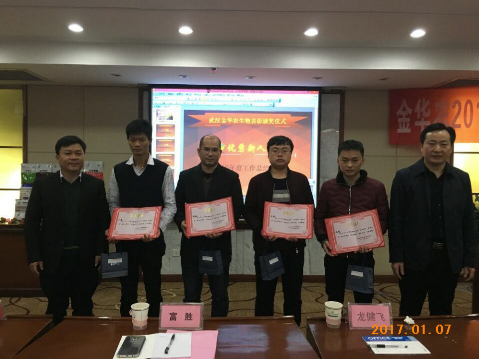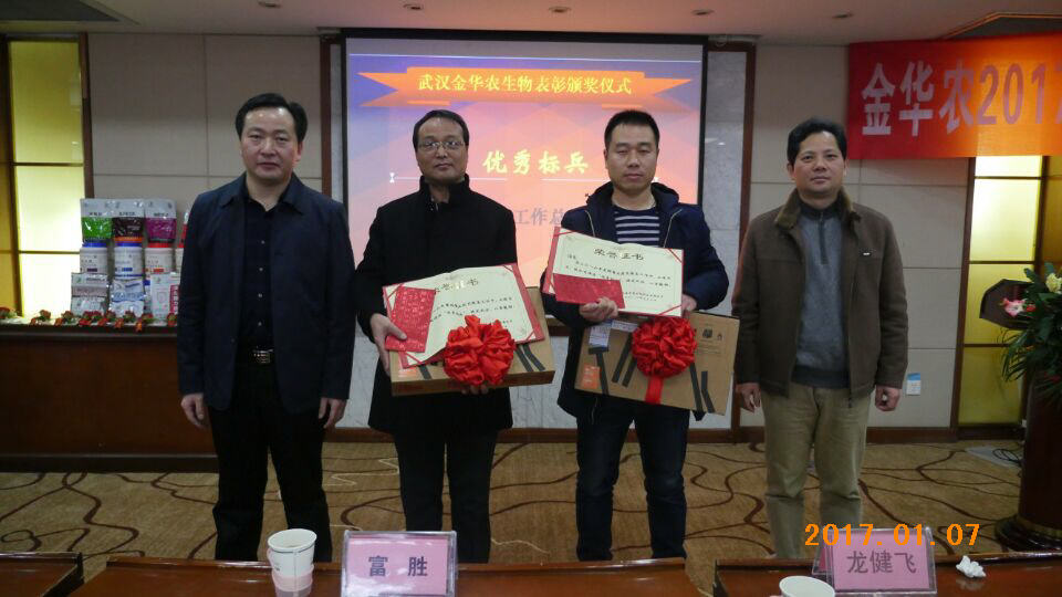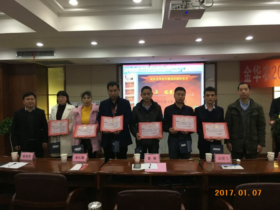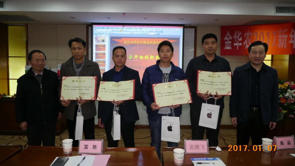 201717日,武漢金華農公司秉承一貫“惜才、愛才、培養、拔高、貢獻”的人才理念,對全年市場優秀工作者進行了大力表彰,各路市場精英迎來了屬于他們的肯定和榮耀!公司行政、市場近百人團隊分享了他們的喜悅與自豪,既為市場精英們歡呼鼓掌,也為自己的努力而叫好,新的一年,讓我們向行業標桿們看齊,勇往直前,爭當第一!