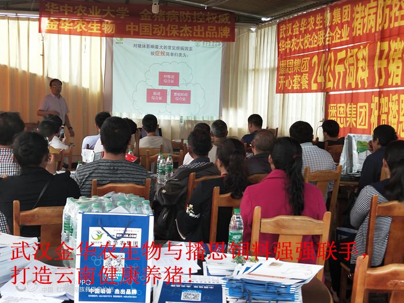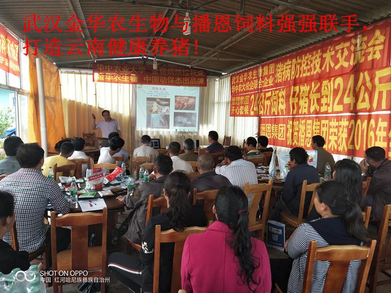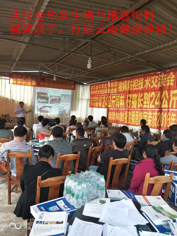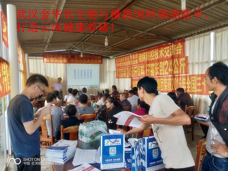 2018年6月25日,武漢金華農生物制藥與云南播恩飼料集團,強強聯手,戰略互信,友好合作,互惠雙贏,服務廣大省內畜牧養豬戶,打造云南健康養豬生態產業鏈第一品牌!武漢金華農生物集團聯合華中農業大學豬病權威專家教授,結合云南養豬地域性的實際情況,于本月25日、28日、30日,連續舉辦3場送“科技下鄉豬病研討會”,打造云南養豬特色服務產業生態鏈條,為廣大養豬戶排憂解難,為廣大養豬戶保駕護航!