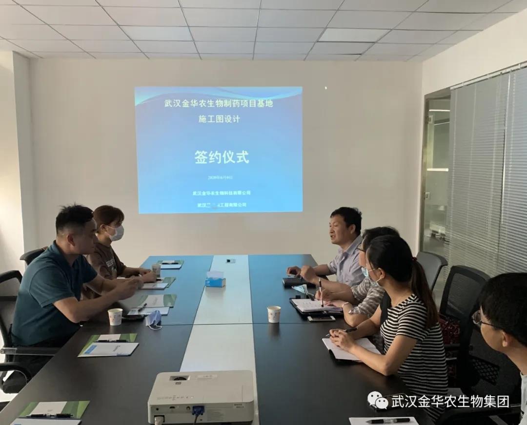 6月9日,武漢金華農(nóng)生物制藥投資3億元新項(xiàng)目基地施工設(shè)計(jì)簽約儀式在光谷生物城舉行。公司項(xiàng)目總監(jiān)黃凡、企劃部經(jīng)理趙方佳、合作方首席設(shè)計(jì)師團(tuán)隊(duì)共同出席此次簽約儀式。